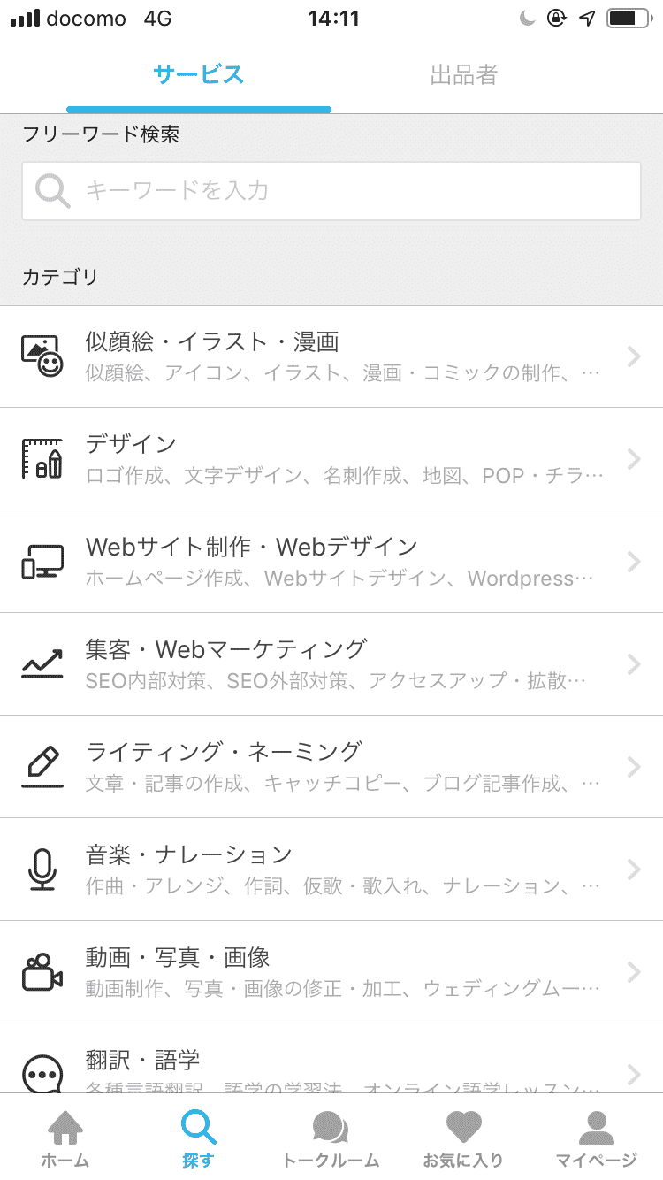 お願いしたいものが決まったらこちらの画面で探します。