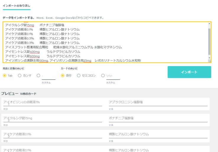 あとは「インポート」を押せば自動的に単語帳を作ってくれます。