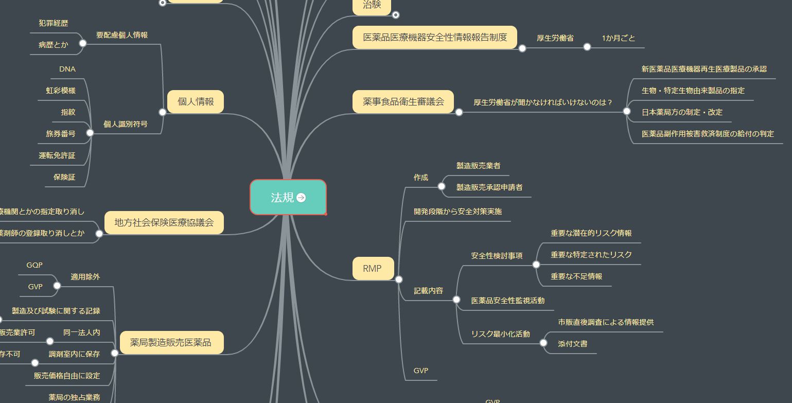 あとはこんな感じにマインドマップでまとめるとわかりやすいですよ。